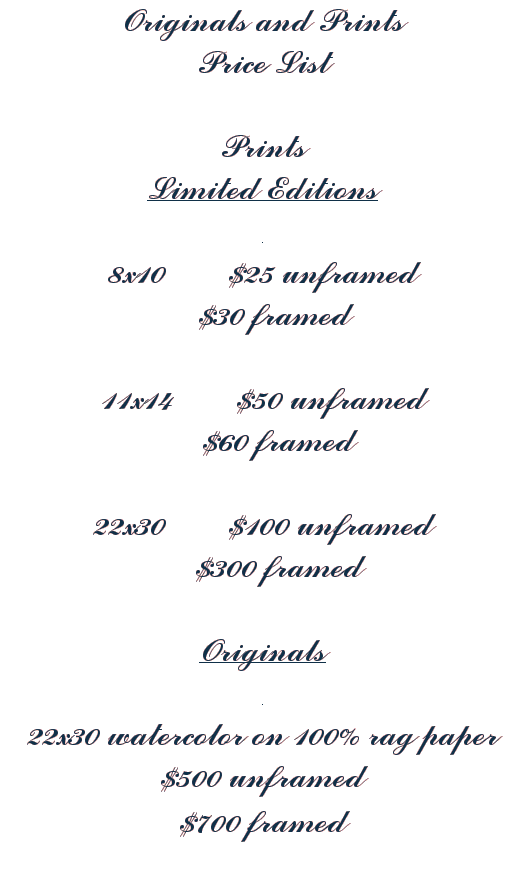 Framed 22 x 30 prints and originals are shipped via UPS. All other artwork is shipped 1st Class U.S. Postal service.